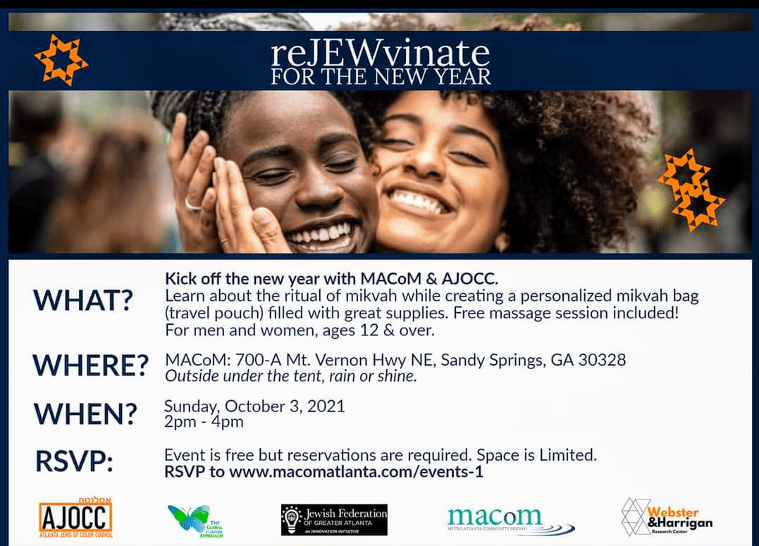 Learn about the ritual of mikvah while creating a personalized mikvah bag (travel pouch) filled with great supplies. Free massage session included! For men and women, ages 12 & over.